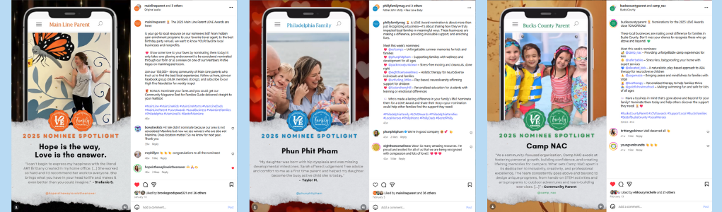 For Non-Member Friends: Purchase your Community Builders’ Luncheon ticket in December and receive a complimentary Temporary Profile Page (active through February 14th) featuring your photo gallery, logo, bio, website and social links, plus up to three endorsements from our LOVE Ballot. You can share your custom Profile Page link with parents and caregivers to collect (and see) your nominations in real time (note, our team approves each one manually). Your Profile Page will receive a spotlight in our Community LOVE Guides Nominees List, and you can extend it past 2/14 by joining as a Member and start taking advantage of our full perks! Visit mainlineparent.com/love, phillyfamily.com/love, and buckscountyparent.com/love to see Profile Page examples.